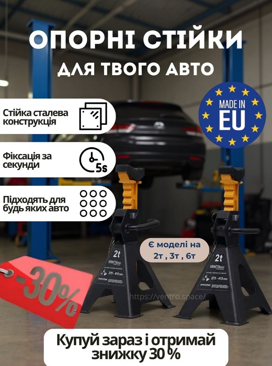 Надійна фіксація авто для безпечного ремонтуПідставки Kraft&Dele KD3095 створені для безпечної фіксації авто після підйому домкратом. Регульована висота дає можливість підібрати потрібний рівень для робіт з підвіскою, гальмами або днищем. Храповий механізм швидко блокується і тримає вагу без просідання. Конструкція зі сталі та широка основа забезпечують стійкість навіть у невеликих гаражах.